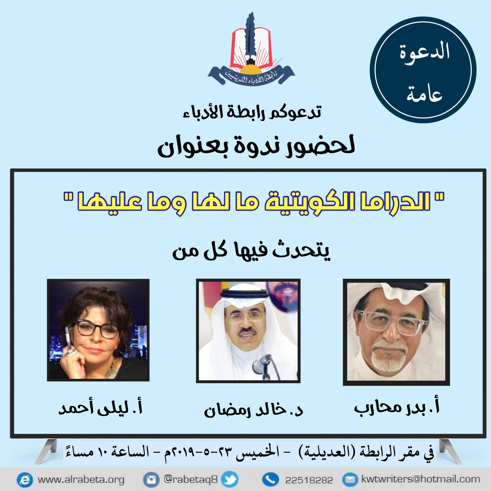 دعوة لحضور ندوة ( الدراما الكويتية ما لها وما عليهــا ).